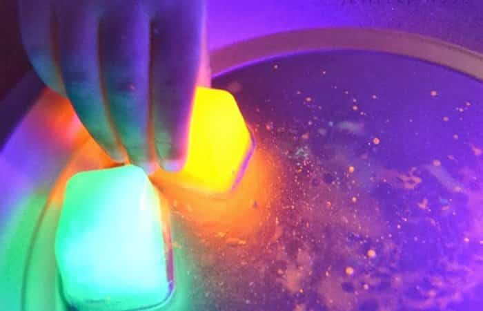 - Utiliza una luz negra y deja que los niños jueguen con los hielos hasta que empiecen a deshacerse.