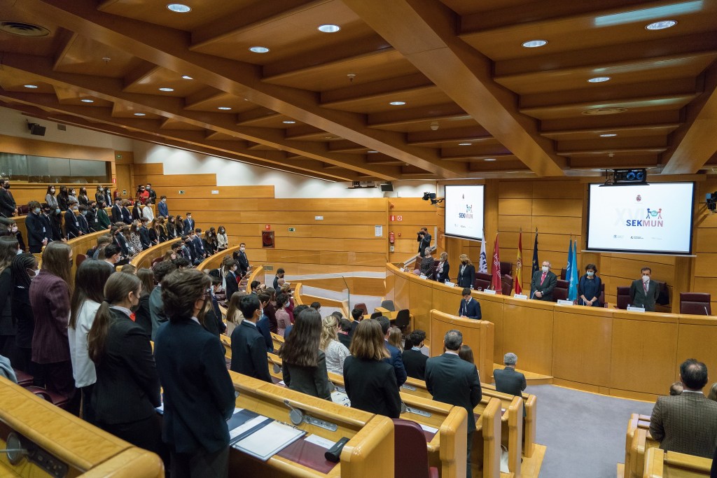 Para demostrar la adquisición de estas habilidades y valores, todos los cursos se celebra en el Senado de Madrid un simulacro de Asamblea de Naciones Unidas en el que participan más de 200 estudiantes de entre 11 y 18 años de los Colegios Internacionales SEK y otros colegios invitados.