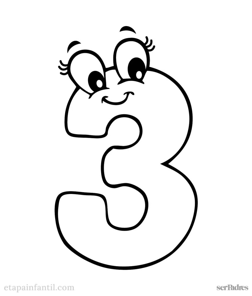 El número tres es uno de los más difíciles de reproducir por los pequeños. Con este dibujo para colorear pueden ir desarrollando sus destrezas poco a poco y hacerlo de una manera divertida. Además, pueden dar rienda suelta a su creatividad y utilizar los colores que prefieran.