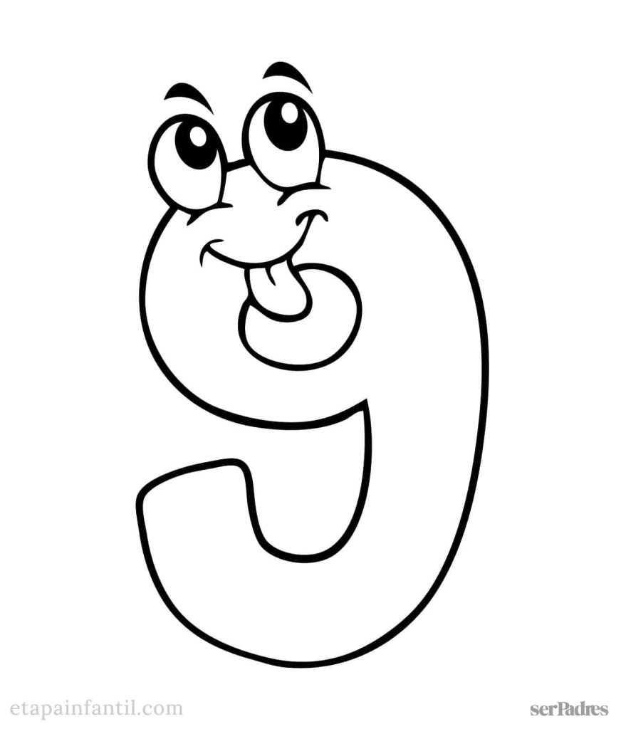 Descargar aquí el dibujo del número nueve para imprimir y colorear