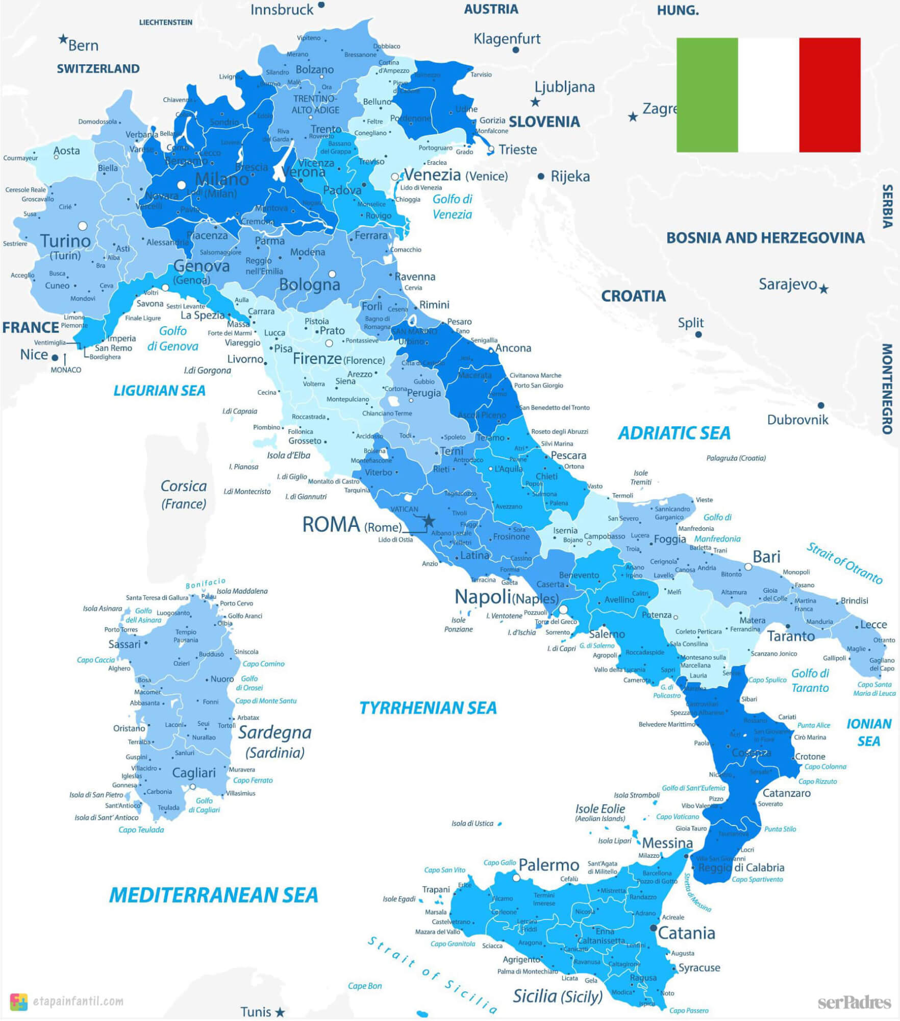 Mapa de Italia político con nombres
