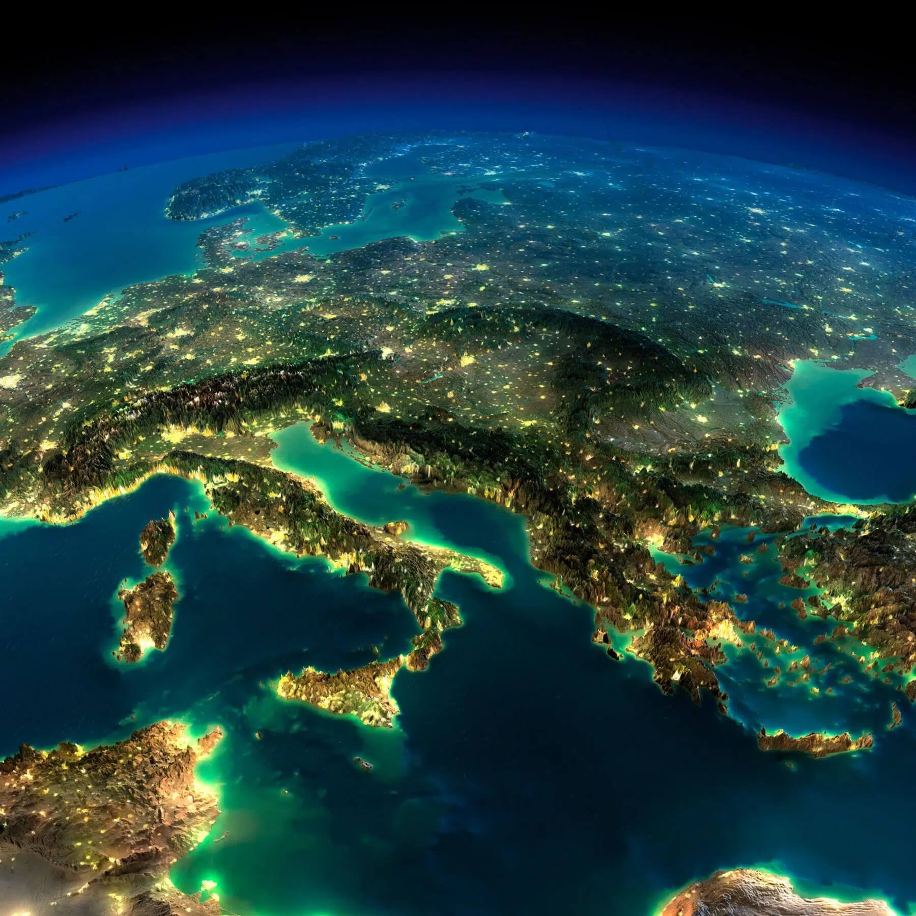Descarga aquí el mapa nocturno de Italia.