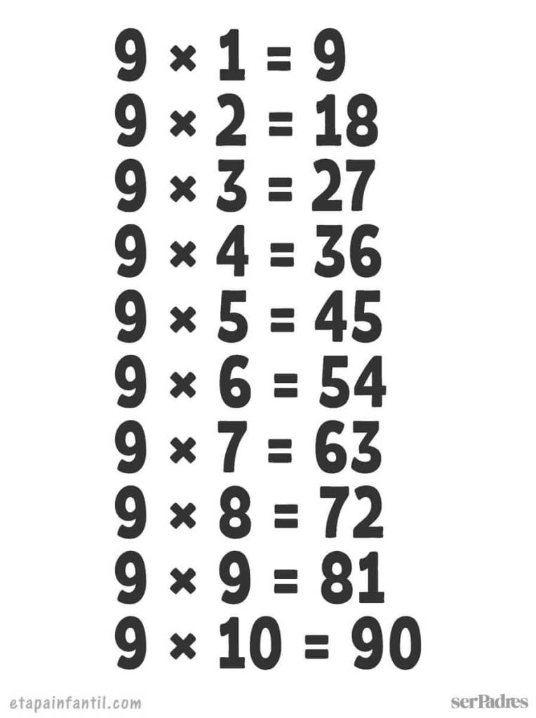 Cómo enseñar la tabla de multiplicar del 9 en casa con trucos sencillos