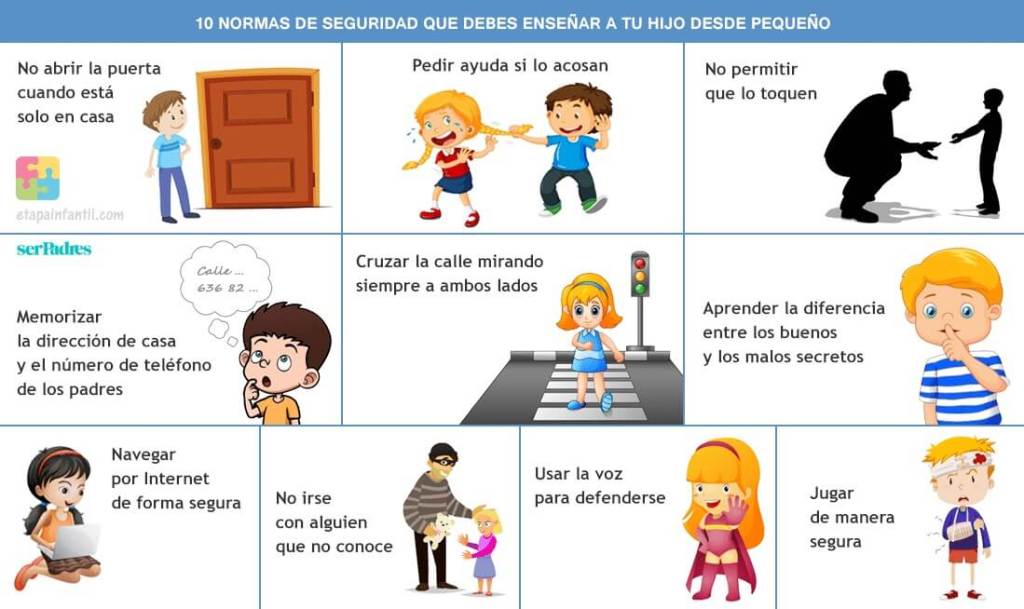 Amplía aquí la imagen de las normas de seguridad para que tus hijos aprendan a protegerse.