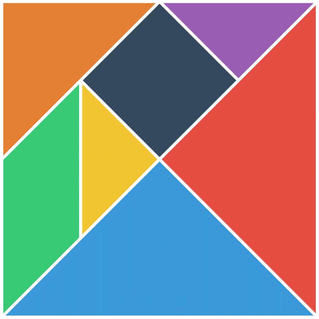 El tángram consta de 7 piezas geométricas denominadas tans. Posee un cuadrado, un rombo y 5 triángulos, dos de ellos grandes, otros dos pequeños y uno de tamaño medio.