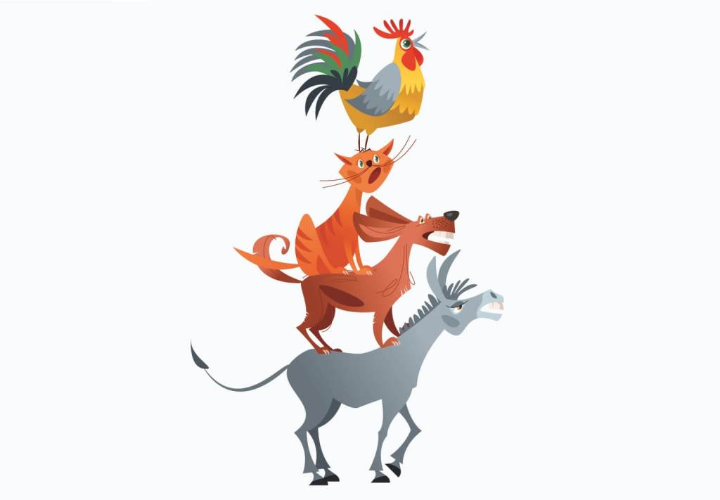 Como si se conocieran desde la infancia, el asno, el perro, el gato y el gallo se pusieron en marcha eufóricos y dispuestos a comerse el mundo en cuanto llegaran a Bremen.