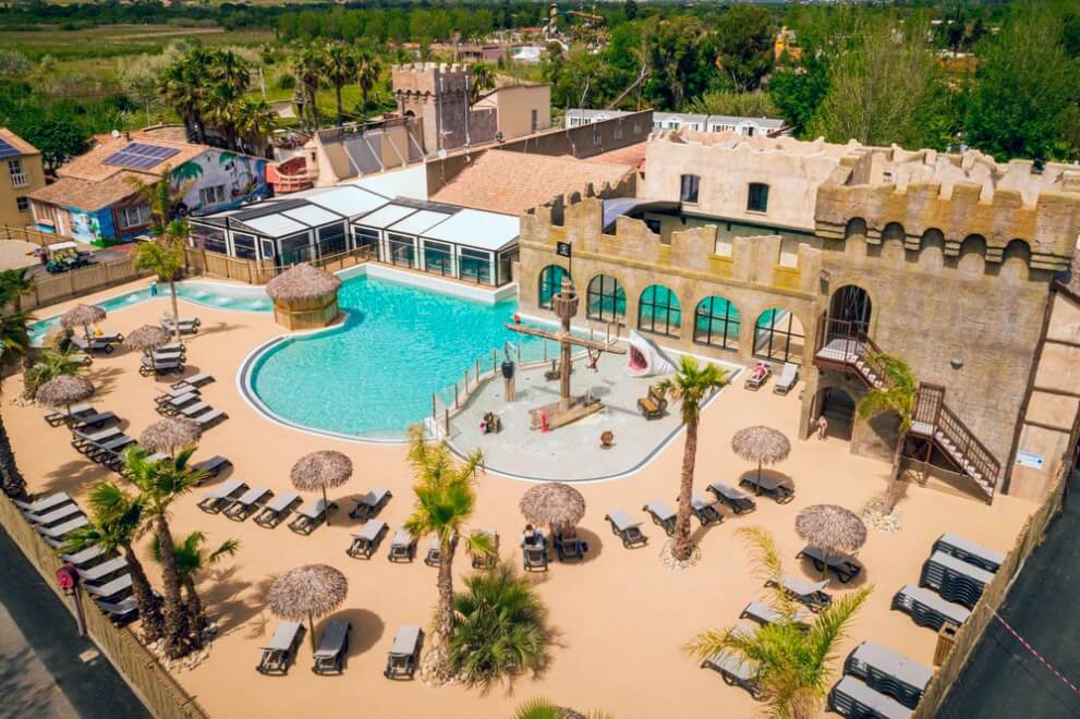 En este camping ubicado a orillas del Mar Mediterráneo, a pocos kilómetros del Cap d’Agde y de la península de Sète, los niños podrán convertirse en auténticos corsarios y piratas por un día. El camping celebra un día temático a la semana, el “Pirates”, en el que hay disfraces, juegos, espectáculos y hasta comida pirata para que tanto los niños como sus padres emprendan un viaje imaginario a la edad de oro de la piratería. Además, el camping tiene un miniclub en el que se organizan diversas actividades infantiles durante el día, así como un área acuática con piscina para los niños y toboganes, un área de juego, un parque temático con figuras de lego, una sala de videojuegos y otra con juegos de mesa. También tiene un parque de aventura donde los niños podrán poner a prueba sus destrezas escalando árboles. Y para que en la noche también se diviertan hay espectáculos de magia, karaoke, bingo, teatro y muchas otras sorpresas que llegan de mano de los animadores.