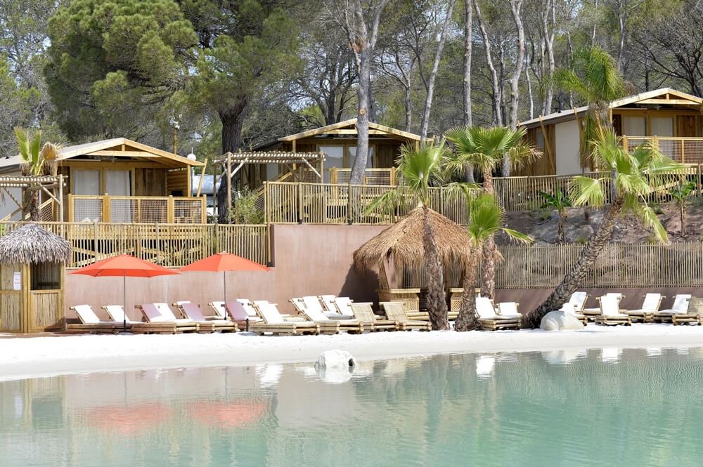 A mitad camino entre el mar y la montaña, a las puertas del pueblo medieval de Roquebrune-sur-Argens, se erige este camping. Un destino perfecto para desandar los alrededores y visitar sitios como Saint-Tropez o llegaros hasta las gargantas del Verdon. En cambio, si lo que queréis es descansar tranquilamente, en el camping también hay muchas opciones para que los niños no se aburran: hay un parque acuático con piscinas, una de ellas exclusiva para los niños, e increíbles toboganes, ríos y cascadas, así como un club infantil en el que se organizan juegos y actividades recreativas para los más pequeños de casa. El camping también cuenta con una amplia cartelera de actividades para la familia que incluye desde talleres educativos y batallas de paintball hasta rutas de senderismo, paseos a caballo y torneos deportivos.
