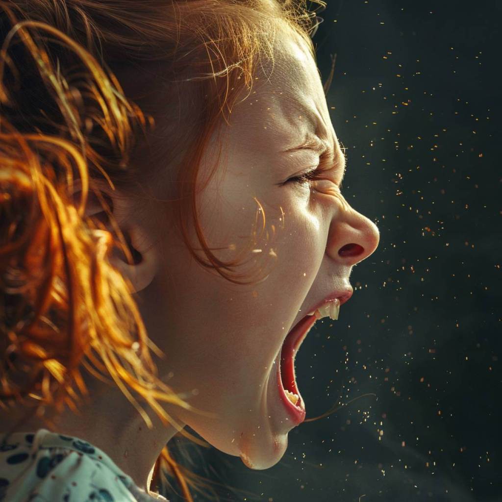 Una niña gritando de rabia