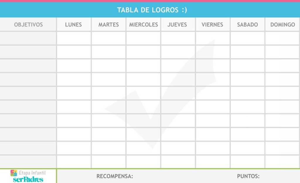 La tabla de recompensas, también conocida como cuadro de incentivos, es una técnica muy útil para instaurar en los niños hábitos saludables a través del refuerzo positivo (del que nunca hay que abusar). Básicamente, se trata de una tabla muy sencilla que consta de diferentes columnas y filas, por una parte se incluyen las metas que debe lograr el niño a lo largo de la semana o el mes, y por otra, en las celdas correspondientes, se van haciendo las marcas, ya sea con una estrella, una cruz o una pegatina, que indican que el pequeño ha conseguido su objetivo.