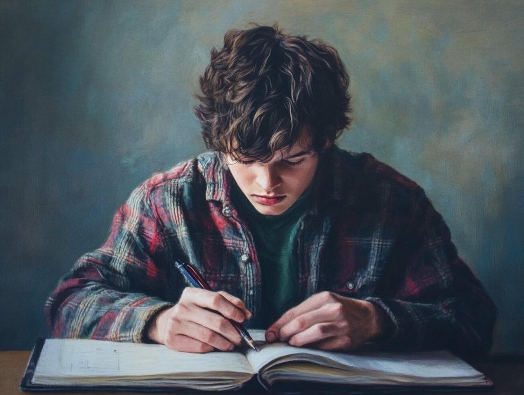 Estudiante con ropa de abrigo en clase. - Imagen: PF