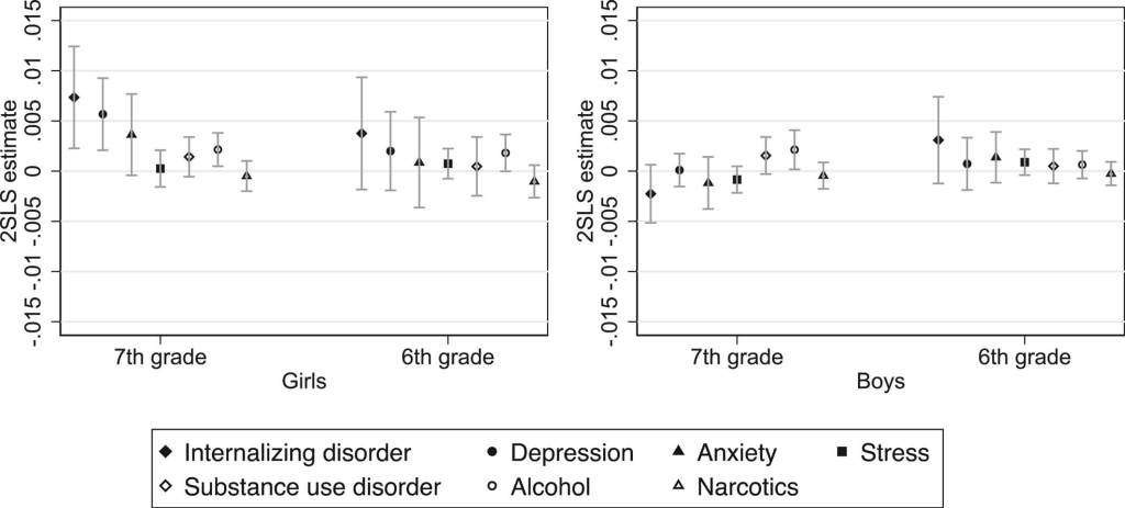 Los resultados son claros y estadísticamente robustos: las niñas expuestas a las notas antes de tiempo mostraron un aumento del 40-53% en el riesgo de recibir un diagnóstico clínico de depresión antes de terminar la secundaria obligatoria. La probabilidad de diagnóstico en estas niñas pasó de una media de 1,5% a casi 2,2%. En cambio, los efectos en niños fueron mucho más débiles o no significativos.