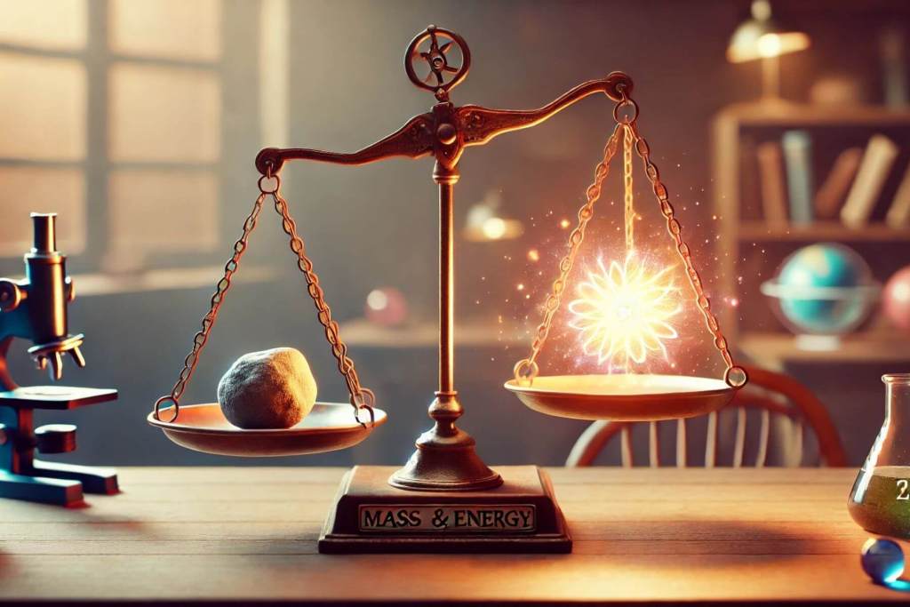 Esta famosa fórmula dice que la masa se puede transformar en energía, y que ambas están relacionadas. Es como descubrir que un trozo de materia guarda un gran tesoro energético dentro. El sol brilla gracias a esto.