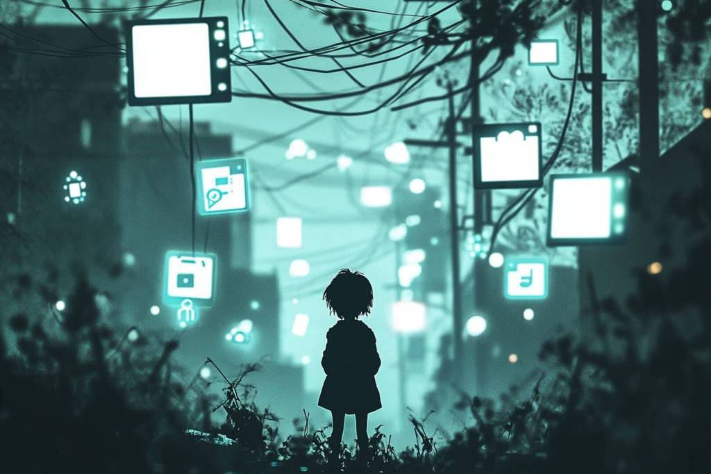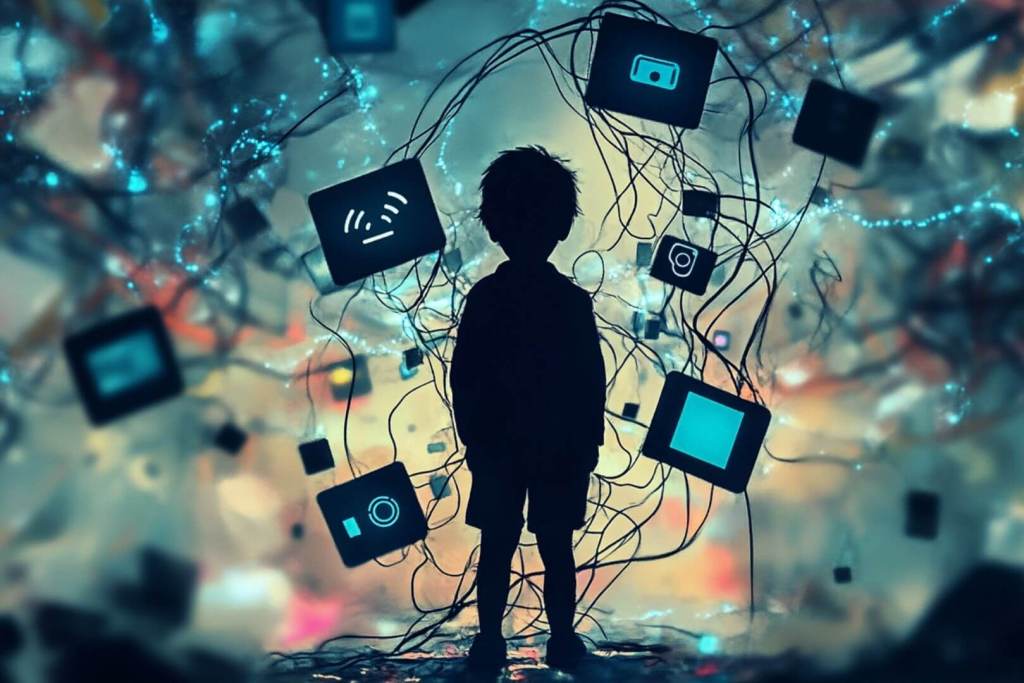 Redes, videojuegos y apps: una maraña digital que empieza a envolver a los más pequeños (Midjourney-RG)