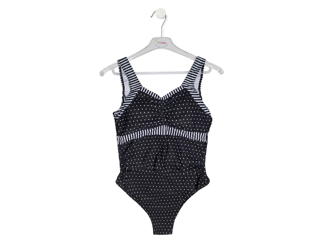 Bañador de lycra negro con estampado de topitos blancos, de Prénatal.