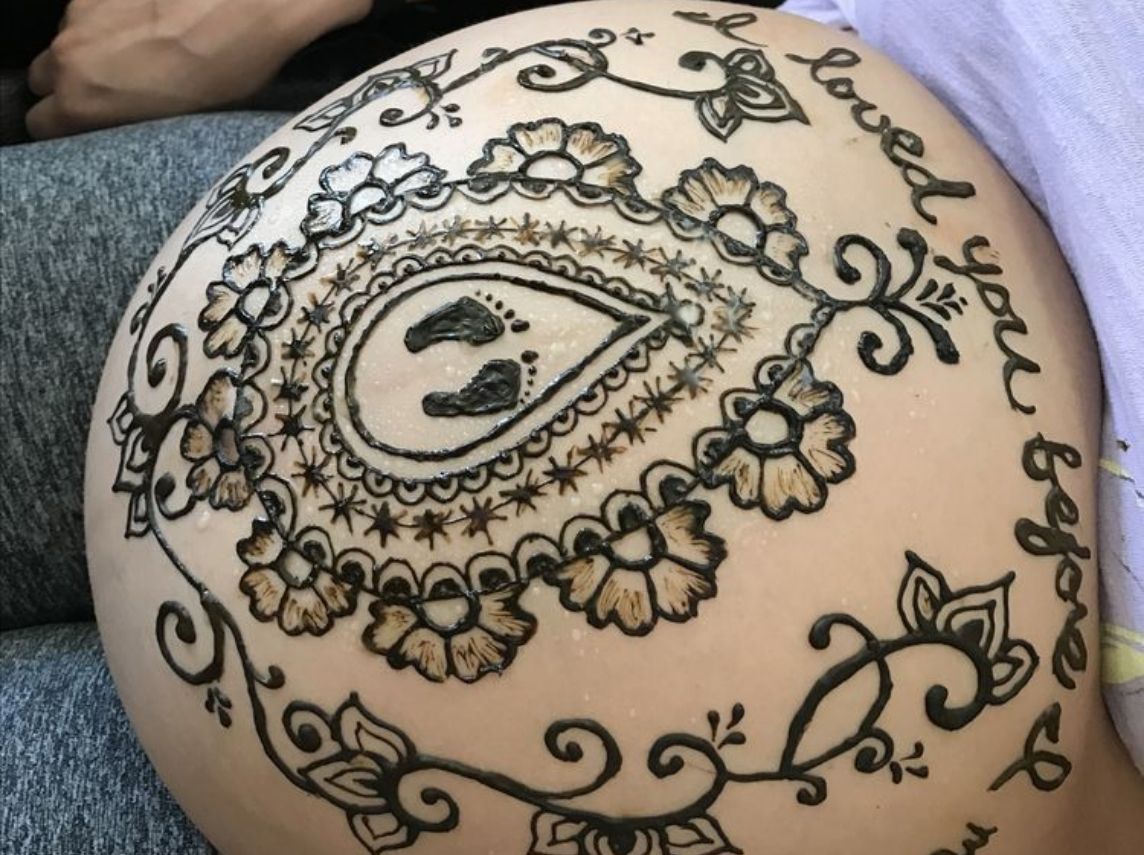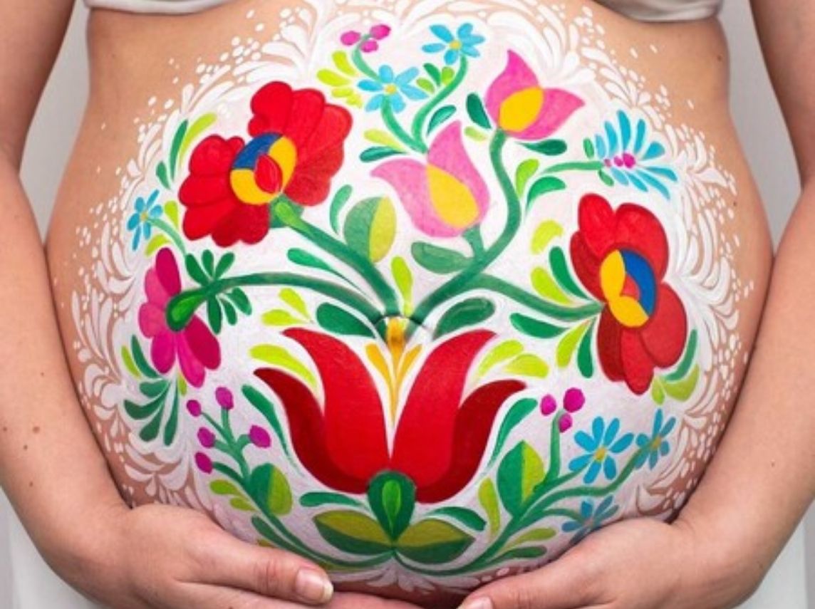 Las raíces de la pintura del vientre se remontan a la tradición de aplicar un tinte vegetal natural conocido como henna a la piel en diseños intrincados. Se creía que los diseños de henna bendecían y protegían a la madre y a su bebé durante el embarazo y el parto. .