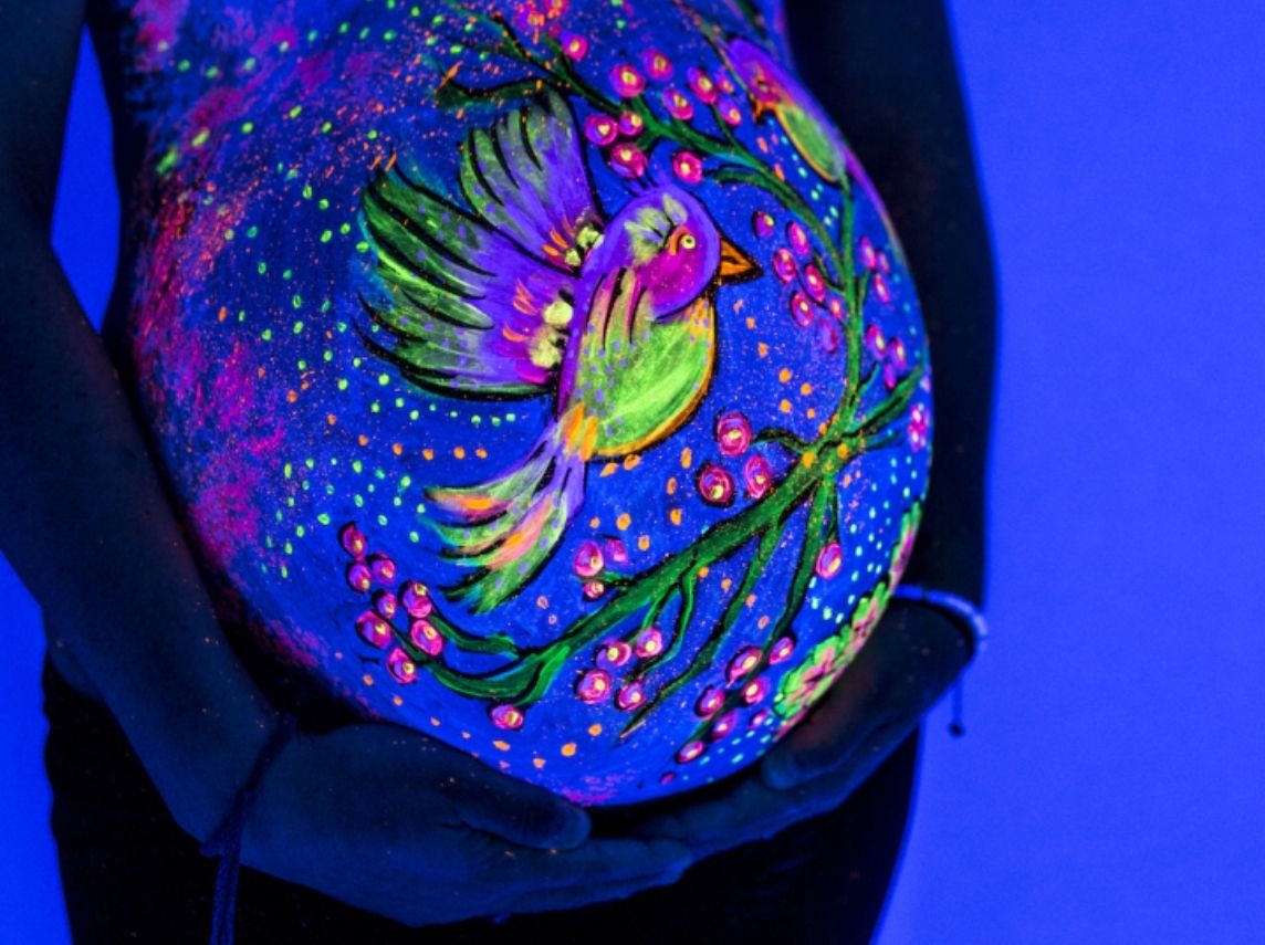 Si nunca has celebrado una fiesta fluorescente, esta es tu oportunidad. Tu tripa decorada con pintura glow acaparará todas las miradas y será la protagonista de un festejo inolvidable para dar la bienvenida a tu hijo o hija.
