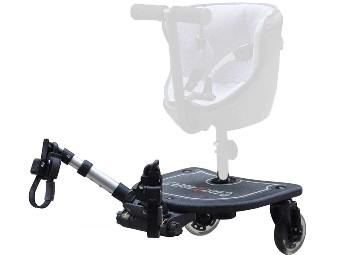 ¿Quieres hacer un regalo a una embarazada que ya tiene otro peque en casa? Una buena idea para facilitar los paseos en familia e incluir también en esta nueva etapa al hermanito o hermanita es regalar un patinete para el coche de paseo como este, el Butterfly de Bugaboo, un patinete universal para que el niño viaje de pie o sentado, porque tiene un sillín extraíble.