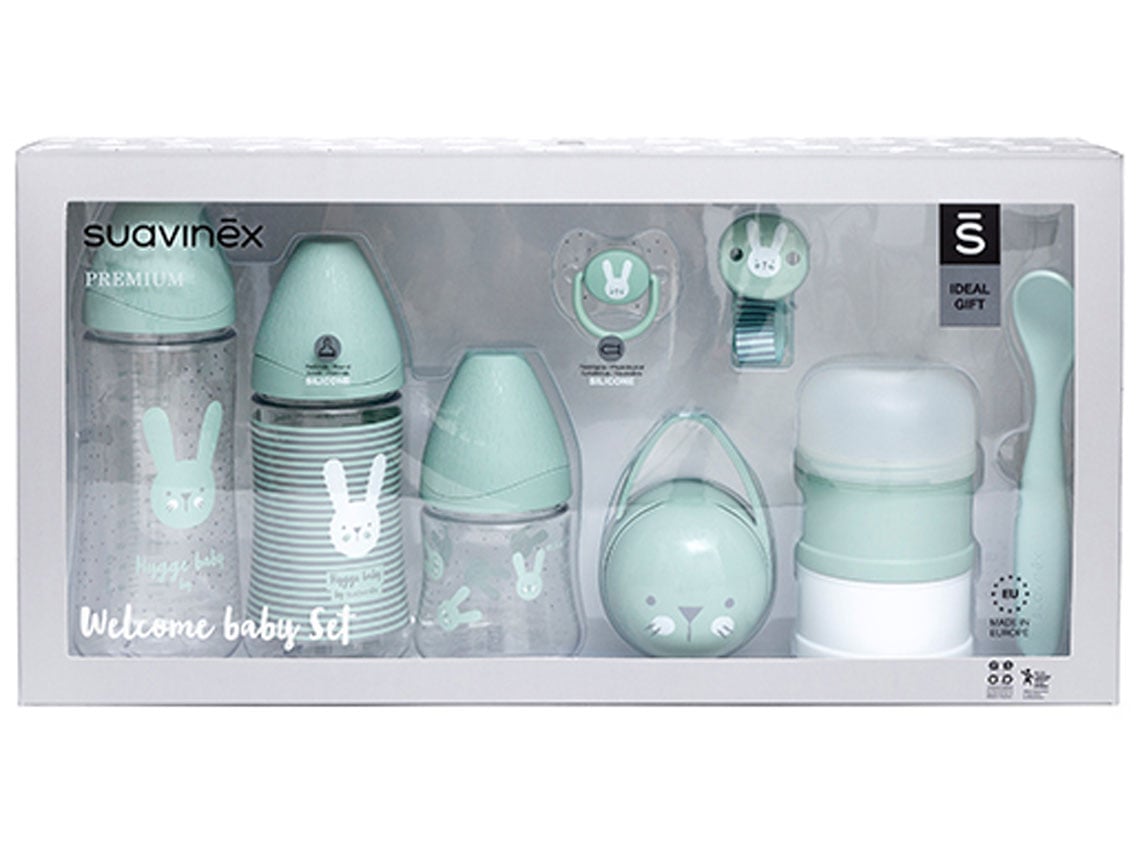 Este set para dar la bienvenida al bebé es de la Colección Hygge Baby, que tiene una filosofía slow life con un toque premium. Este pack está compuesto por:- Biberón para papilla de 360ml +4 meses con tetina de flujo denso: perfecto para bebés muy comilones.- Biberón 270ml +0 meses con tetina flujo variable. Tiene 3 posiciones y su flujo variable permite adaptarse al ritmo de succión del bebé tan solo girando el biberón.- Biberón 150ml +0 meses con tetina flujo lento: ideal para los primeros días de vida del recién nacido.- Chupete con tetina fisiológica de silicona de 0 a 6 meses: su tetina tiene una forma plana y simétrica para que la boquita del bebé pueda colocarse perfectamente.- Broche cinta +0 meses. Cuenta con un diseño reversible con máxima sujeción.- Portachupetes duo: Tiene dos compartimentos individuales para guardar dos chupetes.- Cuhara +4 meses de gran capacidad: ideal, ya que es apta para lavavajillas.- Dosificador de leche: tiene unos compartimentos indepentienes para leche en polvo o cereales. También es apto para lavavajillas.Precio: 41,95 €