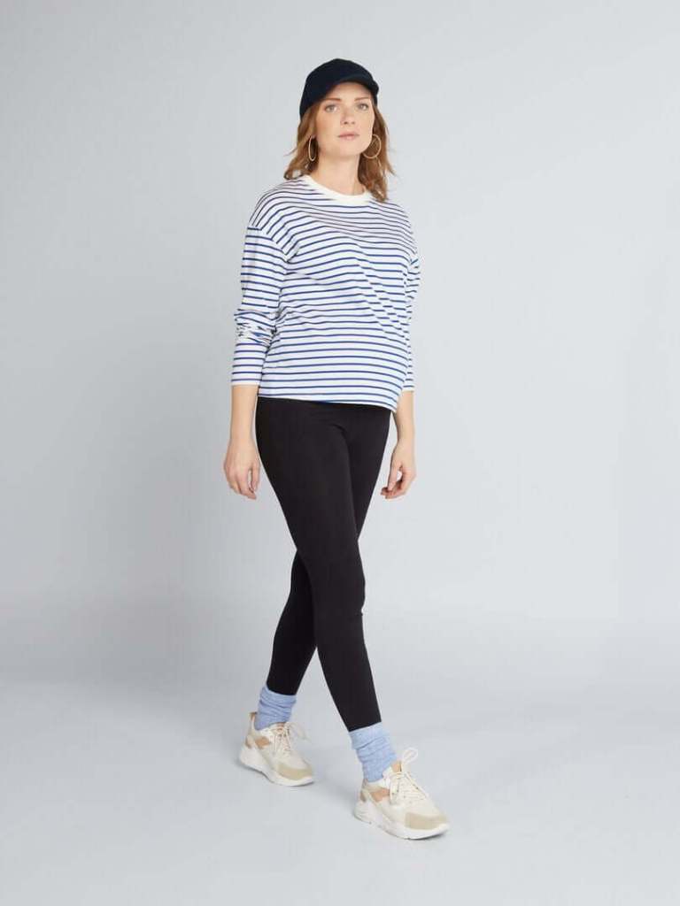 Los legging premamá largo de punto liso de Kiabi son una opción perfecta para un look informar y cómodo. Su diseño en negro y su tejido de punto proporcionan un ajuste suave y elástico que se adapta fácilmente al cambio de la figura. Ideales para el día a día, estos leggings son todo lo que necesitas para complementar cualquier estilismo de tu armario durante el embarazo.