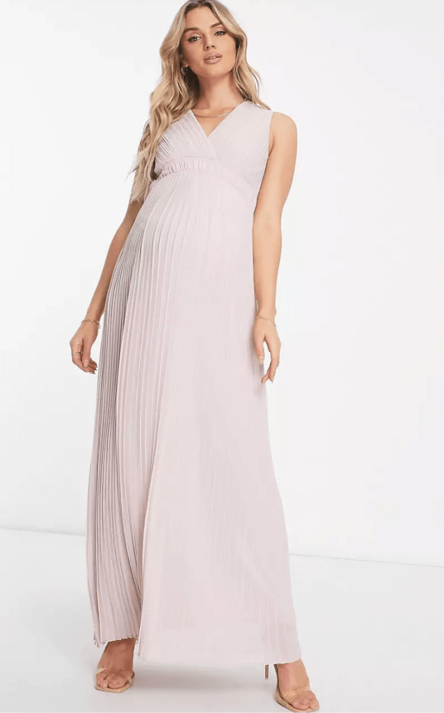 El rosa visón nunca ha sido tan elegante como con este impresionante vestido largo plisado de TFNC Maternity. Con una cinturilla ajustada que realza la figura y un diseño que fluye suavemente sobre la barriga, este diseño es una combinación perfecta de estilo y confort. ¿Lo mejor? Que esta diseñado para ajustarse a tu figura durante y después del embarazo.