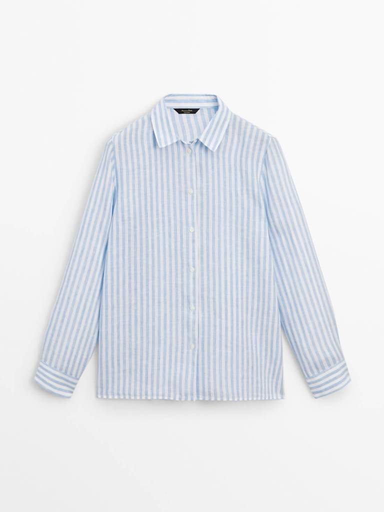 Camisa de rayas confeccionado en tejido 100% lino, con cierre mediante botones y puños abotonados, de Massimo Dutti (39,95 euros).