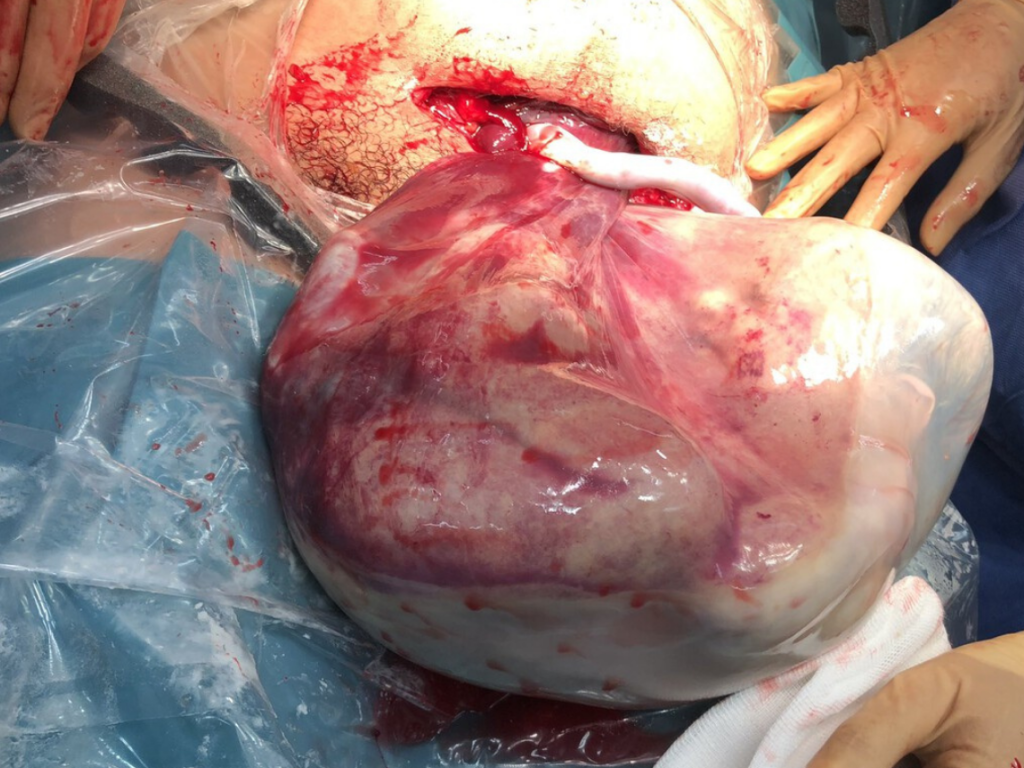 Si ya es raro que esto ocurra en una cesárea, tenemos que añadir el dato de que este parto se trata de una cesárea gemelar, lo que es aún más raro pues solamente la segunda bebé ha sido quien ha nacido con la bolsa amniótica intacta.