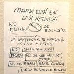 Ante la incipiente importancia de entrar a una reunión virtual y necesitar silencio por parte de su familia, decidió colgar una cartel en la puerta de la habitación donde estaba reunida en el que dejaba claro que “mamá estará en una reunión de 11:30- a 12:15”, junto a un símbolo de prohibido pasar. Como las madres son sabias y saben adelantarse al futuro, sabía antes de empezar que sus hijos en esa hora y cuarto la necesitarían para alguna cosa y echó mano de su imaginación: “la respuesta a tu pregunta está entre una de las siguientes” y, a continuación, escribió las respuestas más comunes de todas las madres a las preguntas de sus hijos. “No sé qué hay de comer” o “no” son solo dos ejemplos de ellas.