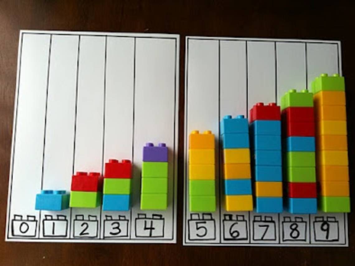 Para este juego necesitaréis hacer un tablero dividido en secciones, las que tendrán cada una un número. El niño tendrá que ir colocando en cada sección una torre hecha con el número de bloques adecuados.