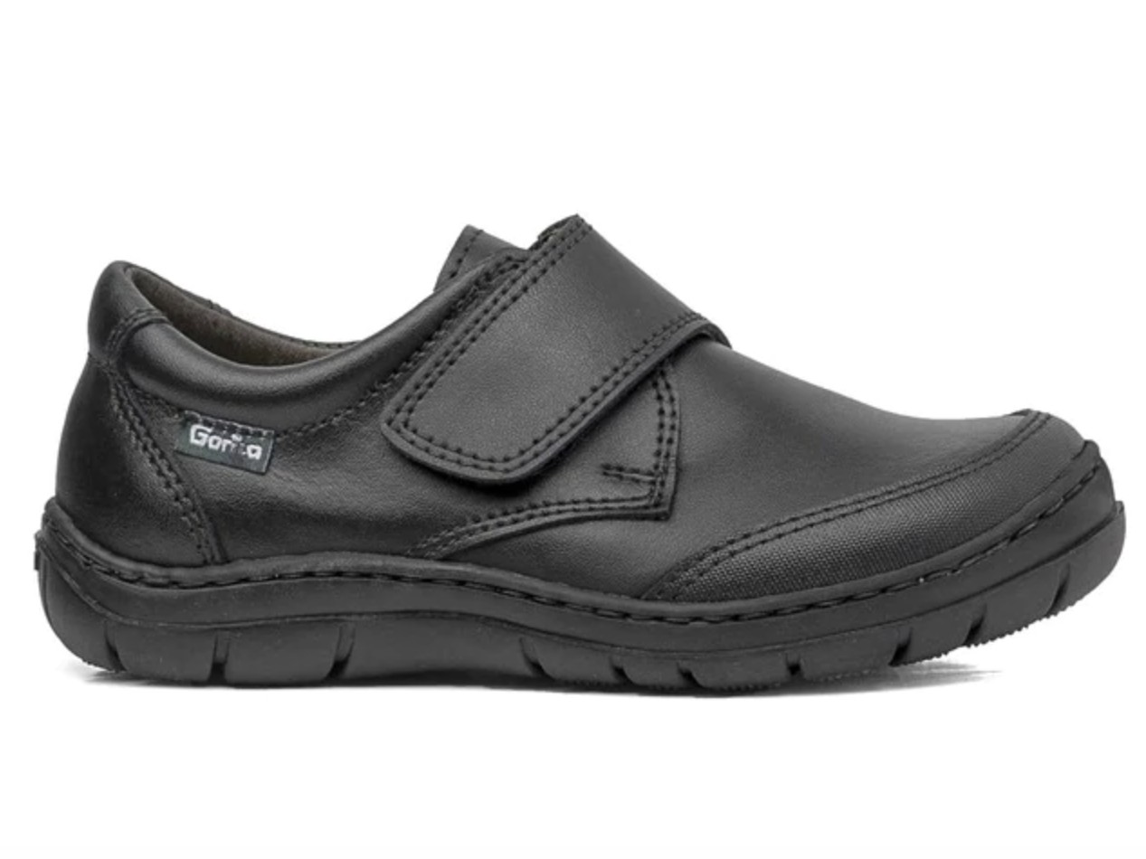 Mocasines de la firma Gorila realizados en piel en color negro que son todo un básico para los niños con uniforme escolar.