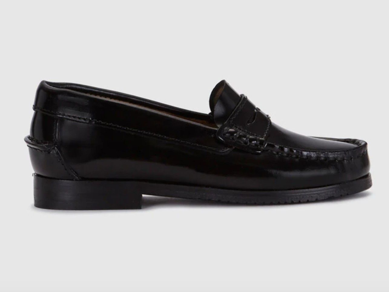 Si prefieres optar por los clásicos, los mocasines colegiales de Castellano de color negro con adorno de antifaz son siempre un recurso ganador.