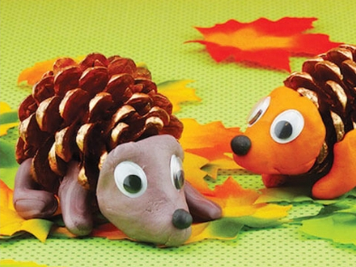 ¿Qué os parece este erizo tan adorable? Solo tenéis que buscar piñas y usar un poco de plastilina. Le damos forma al hocico con el color que más nos guste, añadimos las patitas y la nariz. Ya solo nos quedaría pegárselo a la piña y hacer los ojos. ¡Voilà! Fuente: Hanfie