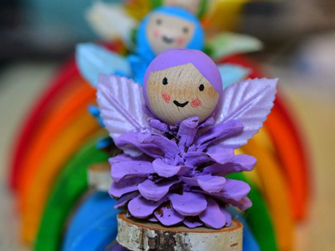 Nos vamos volando a un mundo mágico de ilusión, purpurina y arcoíris. Podemos reutilizar las piñas que nos hayan sobrado de nuestros erizos para hacer estas hadas de cuento. Pintamos el elemento principal y utilizaremos dos hojas a modo de alas. Para terminar, añadimos la cabeza, para la que podéis usar una bolita de madera o plastilina. Fuente: Pinterest
