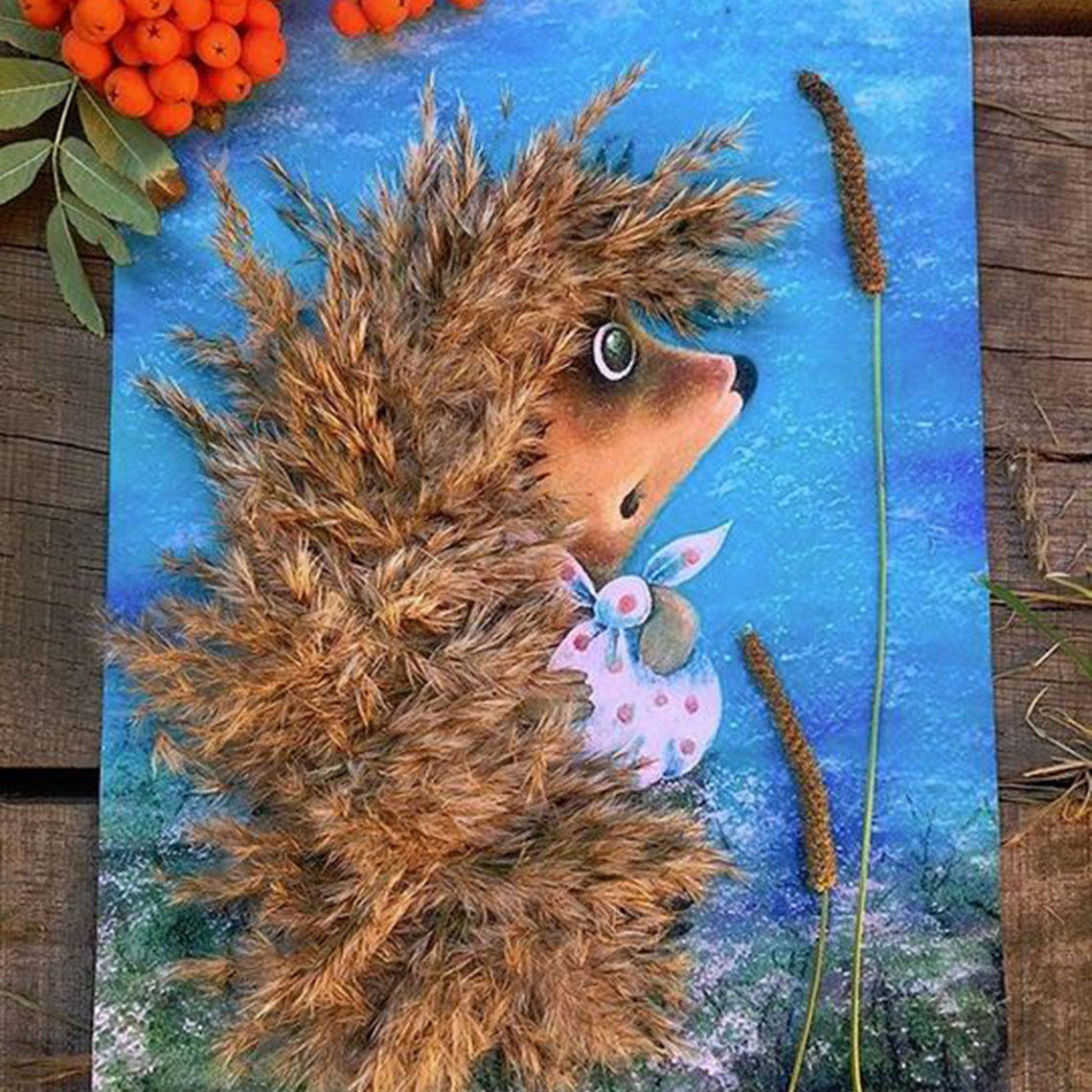 Si os gustaron los erizos de piñas, este os va a encantar. Solo tenéis que recoger plantas silvestres (por ejemplo espigas) y colocarlas a modo de pelo en un dibujo. ¡La cara de nuestro simpático amigo es cosa vuestra! Fuente: Pinterest