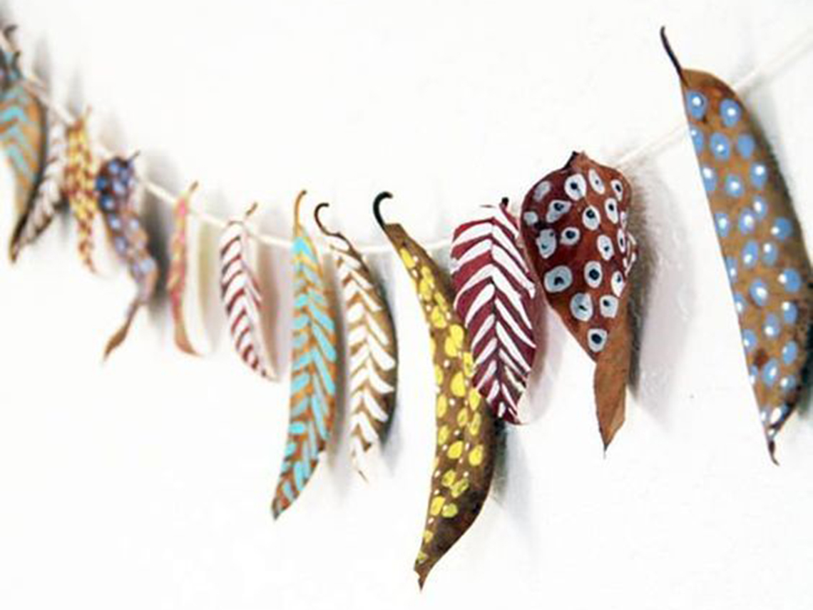 Si estás deseando hacer un cambio y darle más color a tu casa, ¿qué mejor opción que con las manualidades que han creado tus hijos? Coged las hojas más alargadas que encontréis y pintarlas