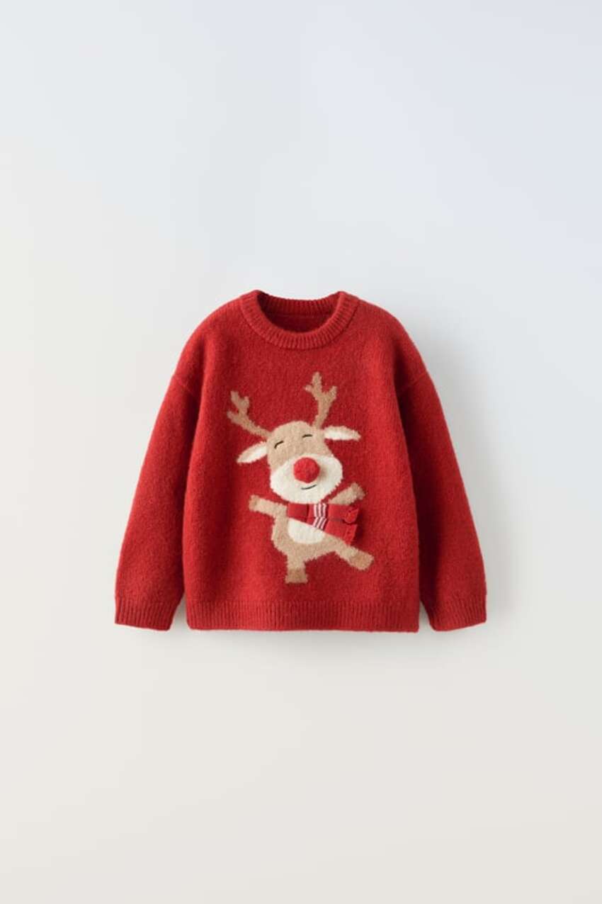 Otro de los jerséis que podrán llevar tus hijos durante todas las fiestas navideñas es este de punto de color rojo con un reno bordado sobre él que encontrarás en Zara. Precio: 19,95 euros