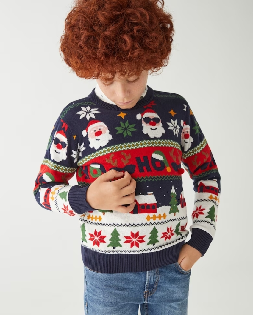 Ni color ni texturas le faltan a este original jersey de H&M que tus hijos no querrán quitarse en toda la Navidad. Precio: 17,99 euros