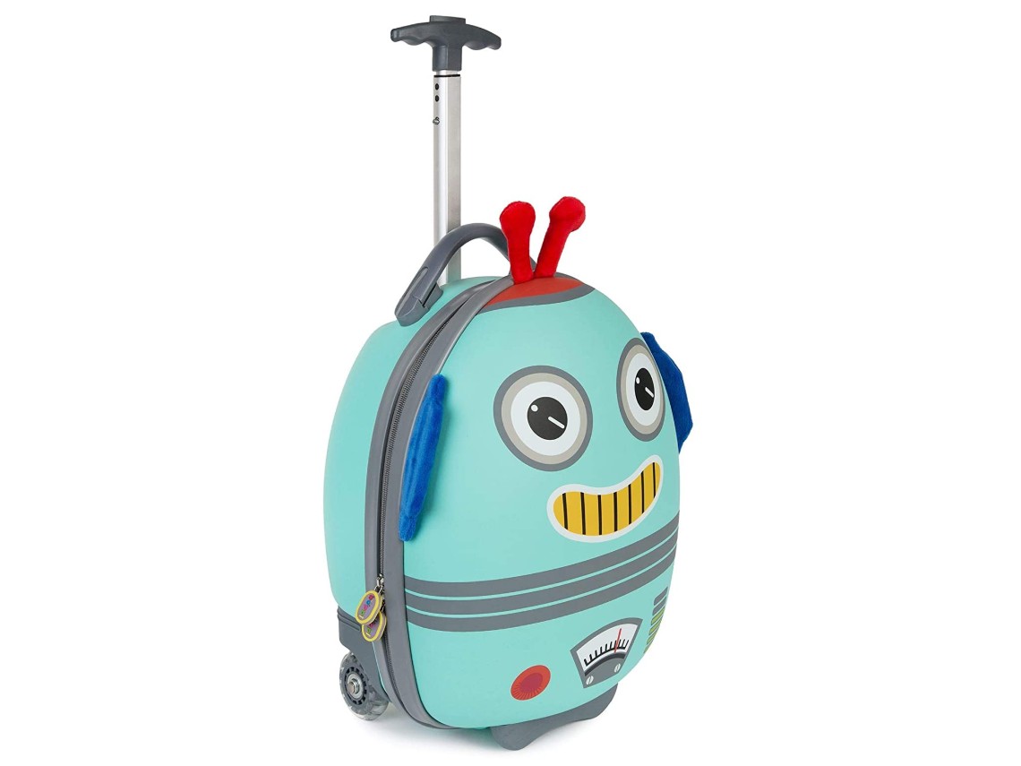 Con forma de robot, esta simpática maleta de Boppy tiene una capacidad de almacenaje de 17 litros. Precio: 45,99 euros