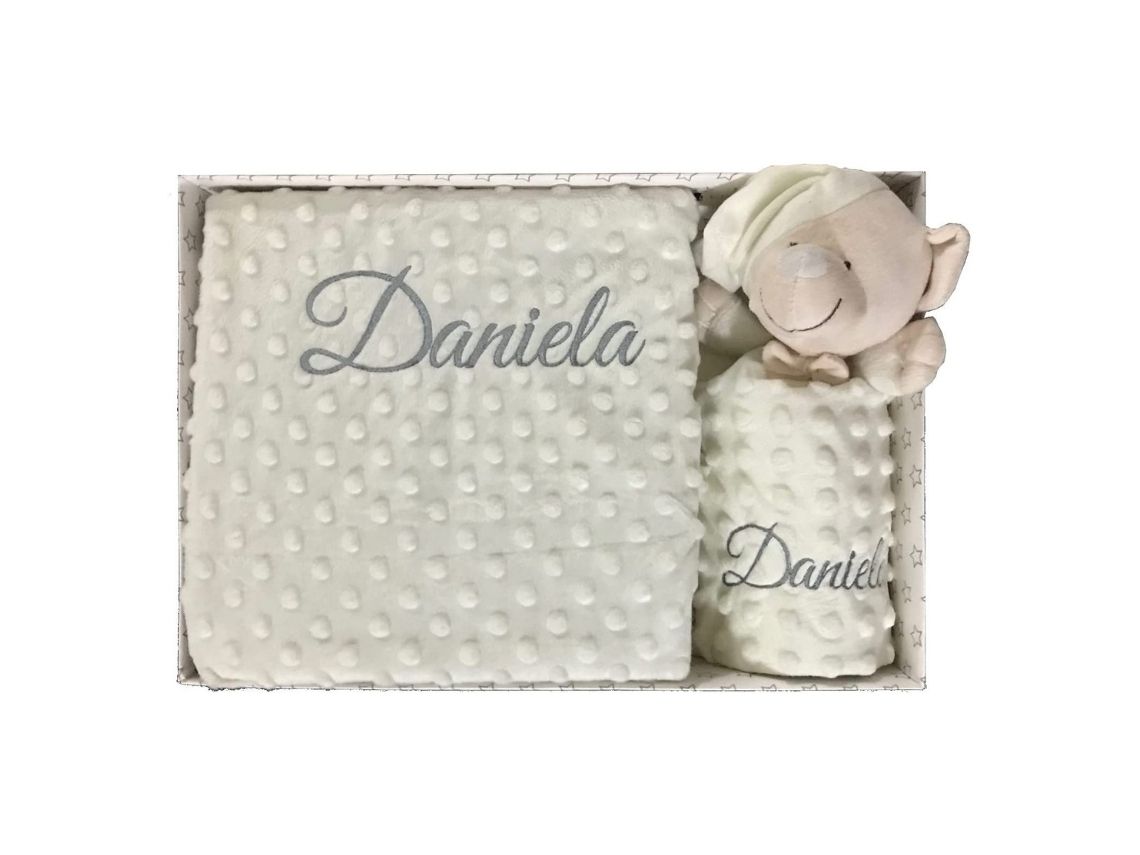 Para que tengan todo lo indispensable para dormir, ¡estos productos son perfectos e ideales!.Podéis regalar mantitas personalizadas como las de la imagen y si, además, incluyen un dou-dou, ¡mejor que mejor!