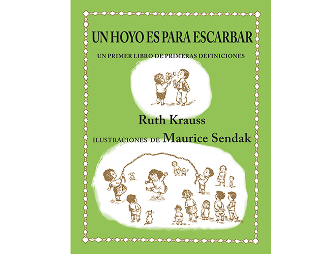 “Un hoyo es para escarbar”. “El mundo es para que podamos ponernos de pie encima”. “Los niños son para quererlos”. Las definiciones que contiene este pequeño gran libro, inseparables de las ilustraciones sencillas y llenas de vida de Maurice Sendak, nos zambullen en esa sabiduría infantil que vamos olvidando cuando crecemos. Un hoyo es para escarbar fue el primero de los ocho libros en los que trabajaron juntos Ruth Krauss y Sendak. Publicado en 1952, el texto está formado por definiciones reales que la autora recopiló de niños de 4 y 5 años, como cuenta Ellen Duthie en su blog Lo leemos así. El formato del libro se adapta estupendamente a las manitas de los destinatarios y al dinamismo y el calor que desprende. Otro de esos casos en los que menos es más. Ed. Kalandraka