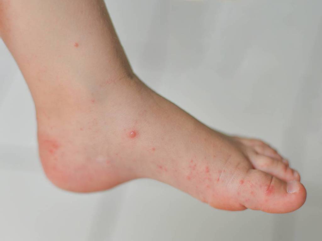 - Sarpullidos de puntitos rojos planos que se pueden convertir en heridas o ampollas en zonas como palmas de las manos, plantas de los pies y a veces, nalgas, área genital, codos y rodillas.