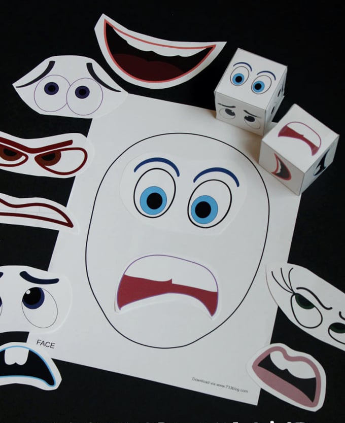 Con la ayuda de un dado, los niños aprenderán a poner las emociones en la carita sin rostro. El primer paso para educar las emociones es identificar cómo nos sentimos y así hará que nos conozcamos mejor, de esta forma nuestro modo de actuar tendrá un sentido y podremos modular mejor nuestras expresiones de la emoción.Fuente: http://www.inspirationmadesimple.com