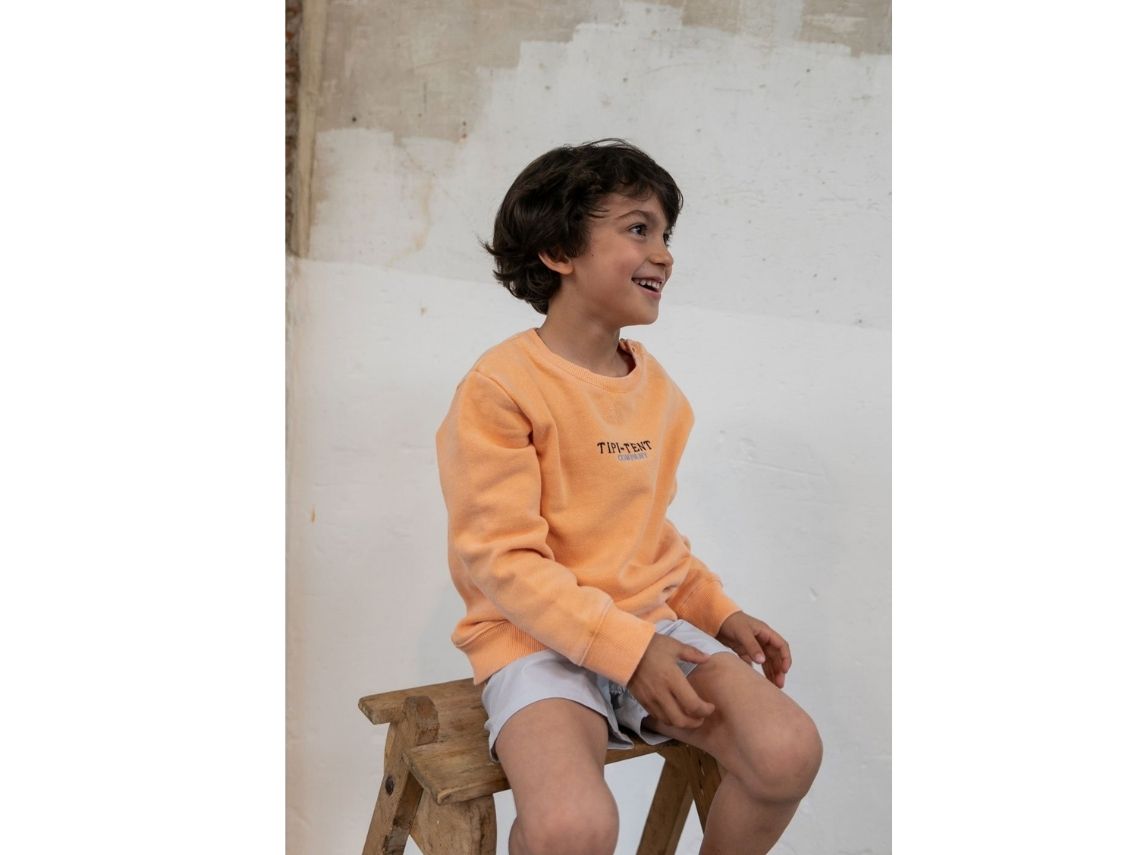 Otra de las prendas más icónicas de Tipi Tent, pero en talla infantil: esta sudadera naranja.