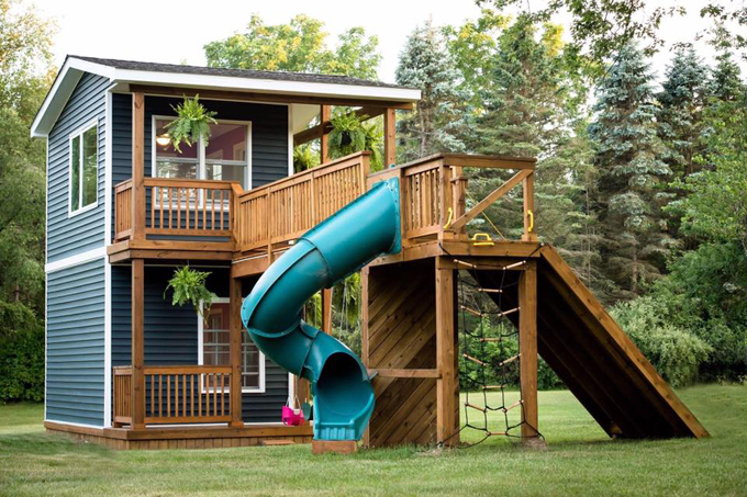 La casita cuenta con toboganes y varias entradas.