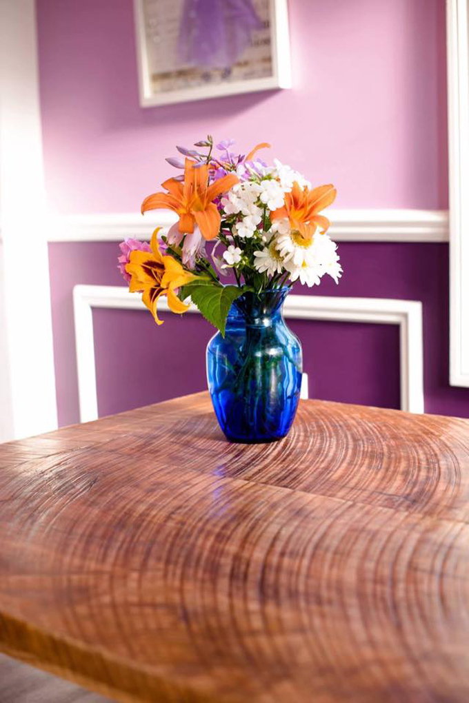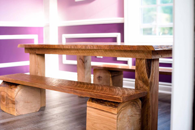 Este banco de madera es perfecto para comer.