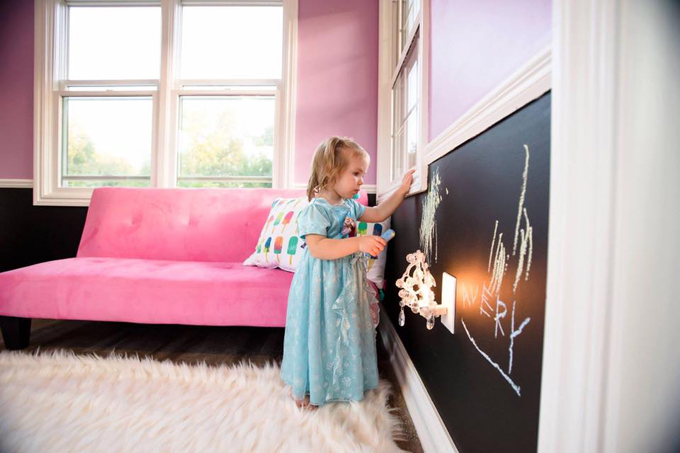 ¿A quién no le hubiera gustado tener toda una pared hecha de pizarra para poder pintar y borrar y volver a hacerlo?