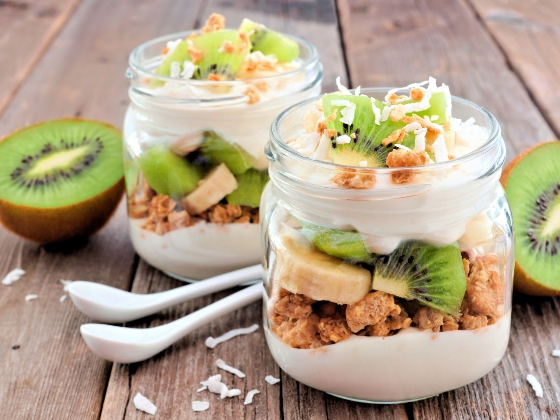 El yogur tiene vitaminas A y B12, calcio, y potasio. Puedes complementarlo con frutas cortadas naturales para darle un toque dulzón y con granola para darle otro toque 'crunchy' (crujiente).