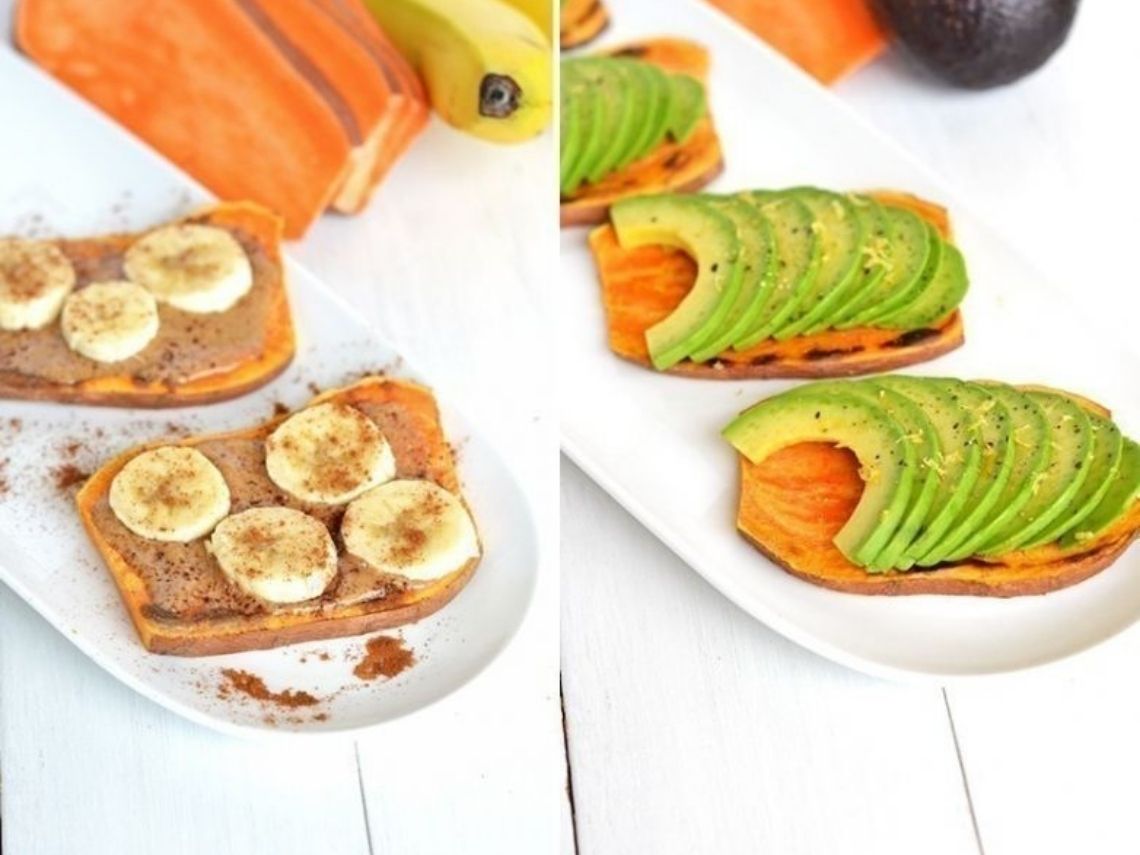 Una tostada casera sin cereales y con una base de patata dulce, ideal para los niños que son intolerantes al gluten. Podemos acompañarla de muchos toppings y hacer que los peques deseen más después de comerse la primera.