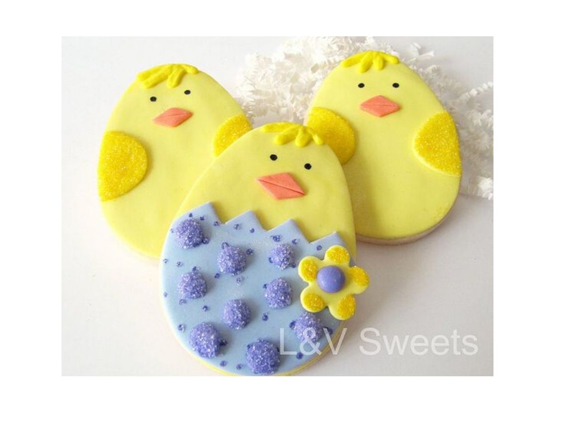 Estas galletas decoradas con foundant en forma de pollitos son lo más.