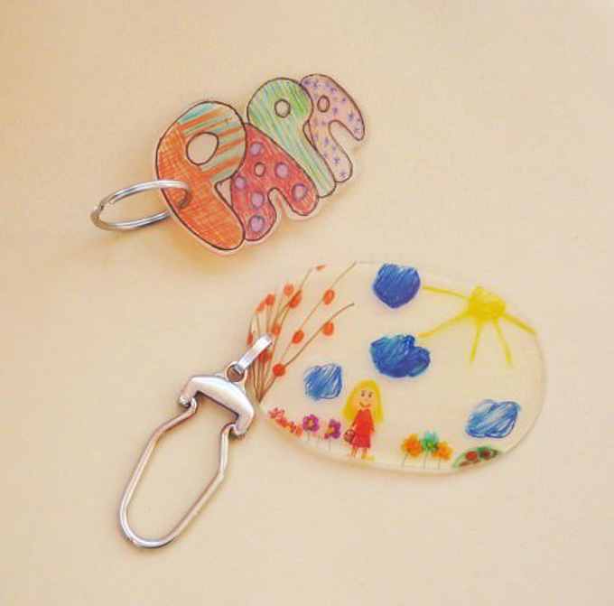 Para realizar este súper llavero solo necesitarás una anilla, rotuladores y plástico mágico. Este plástico te permite dibujar sobre él y, pasado por el horno, adquiere volumen y dureza. Fuente: porcuatrocuartos.com